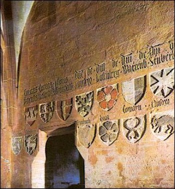 Burgsaal mit alten Wappen von 1360 |